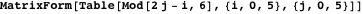Finite quandles are somewhat curious; for instance, the following is the operation matrix corresponding to a six-element quandle (due to Takasaki).