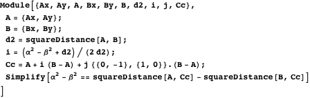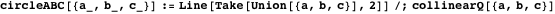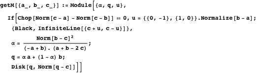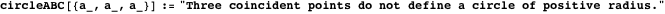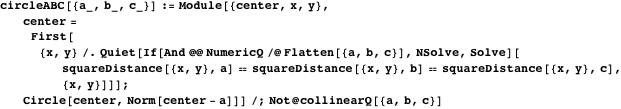 computes the unique circle passing through three given points; if they are collinear, then the function