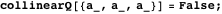 tests whether three given points are collinear. When exactly two of them are equal, it gives