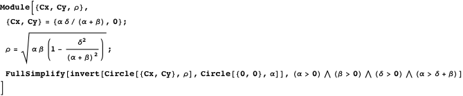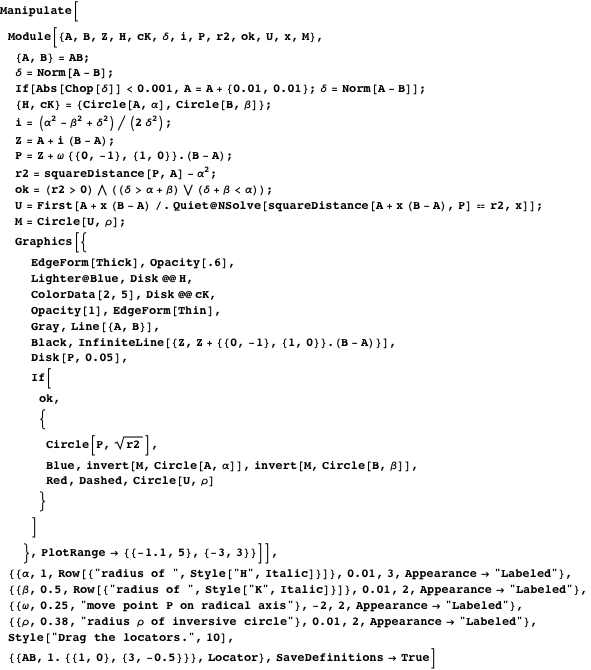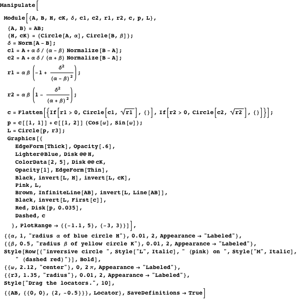 | J. Rangel-Mondragón, “Inversive Geometry: Part 3,” The Mathematica Journal, 2017. dx.doi.org/doi:10.3888/tmj.19-4. | |