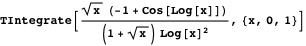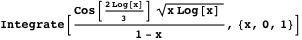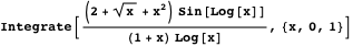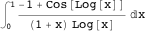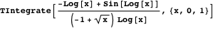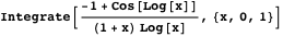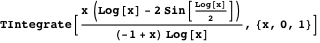 Integrals with an integrand involving a trigonometric function composed with a logarithmic function as a factor are also interesting because there are many integrals of this form that cannot be directly evaluated by state-of-the-art computer algebra systems. For example, consider the definite integral