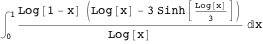 function is based on the substitution of logarithmic functions into the Maclaurin series expansions of certain trigonometric/hyperbolic expressions within numerators of integrands, as illustrated in the preceding example. Since Mathematica is able to evaluate a large variety of integrals involving powers of logarithmic functions, the