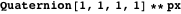 through the use of de Moivre’s formula for quaternions, works quite well for quaternions with numeric entries.