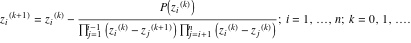 are sufficiently good initial approximations to these roots, then the method converges at a quadratic rate, as was first proved by Dočev [18]. The iteration procedure (12) computes one approximation at a time based on the already computed approximations. For this reason, it is usually referred to as the total-step or parallel mode. The convergence of the method can be accelerated by using a variant—the so-called single-step, serial or sequential mode—that makes use of the most recent updated approximations to the roots as soon as they are available: