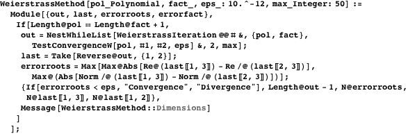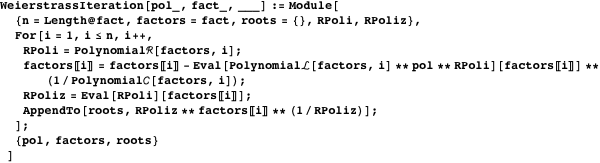 We consider now the application of the Weierstrass method to the computation of the roots of the polynomial