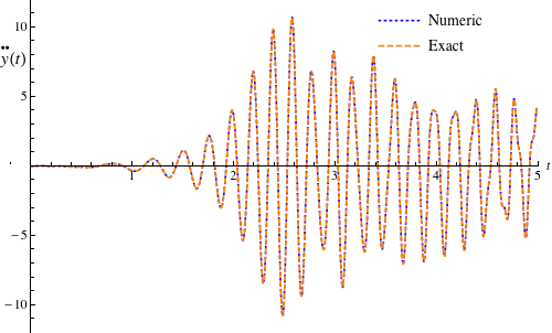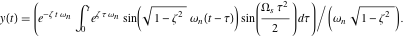 , which is the forcing function on the right-hand side of the equation. Since we are interested in the peak acceleration response, the second derivative of the solution, equation (7), is the sought-after response time history.