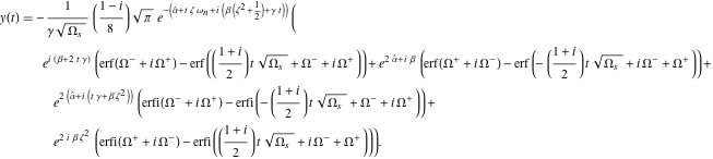 An identical procedure can be applied to the second of these integrals, leading to an expression involving imaginary error functions. Performing the indicated calculations (including the associated algebra) gives the following closed-form solution for the linear frequency-sweep excitation case. In the interests of compactness, it is helpful to first introduce the following auxiliary parameters: