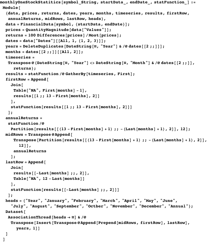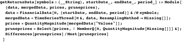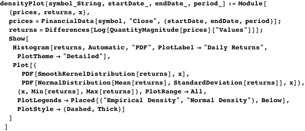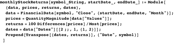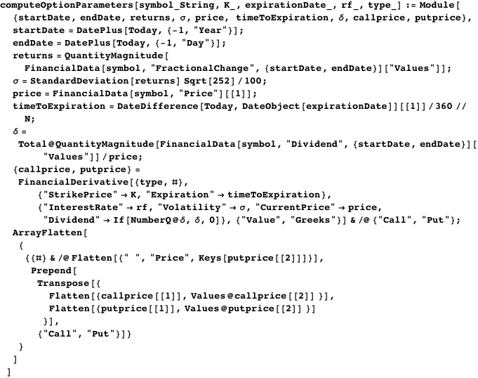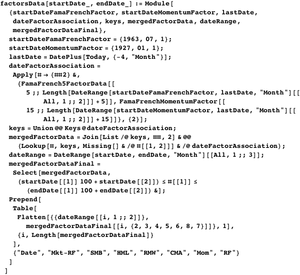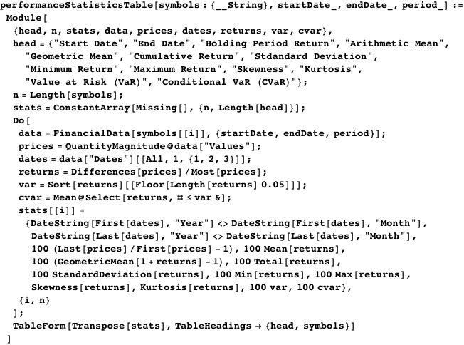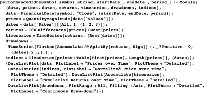 We have provided all the custom functions in the text so that users can make changes as they learn how to program in the Wolfram Language. Furthermore, we minimize the explanation of any financial concepts in this article as our focus is on introducing financial application of the Wolfram Language.