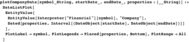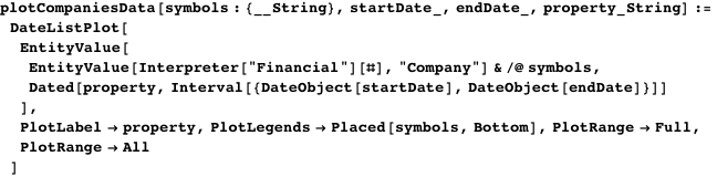 function to compare any specified property of different companies. The function takes a list of stock symbols, beginning period, end period and a property to consider as its arguments.