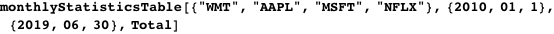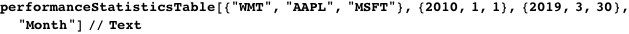 ) for Apple Inc. (AAPL) over the period January 1, 2000, to January 1, 2019, and make a dataset. After the dataset is constructed, we can pull data and do further analysis using a rich set of built-in Wolfram knowledge.