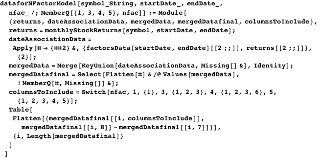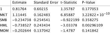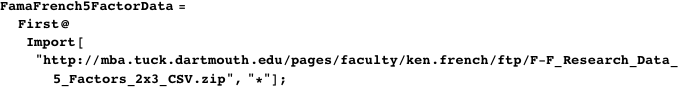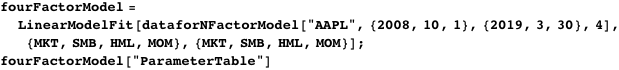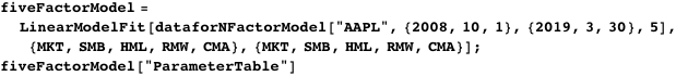 ![InterpretationBox[Description, TextCell[Enter column head here, Italic, Editable -> True]] InterpretationBox[Models for r-rf, TextCell[Enter column head here, Italic, Editable -> True]]; InterpretationBox[Capital asset pricing model (CAPM), TextCell[Enter data here, Editable -> True]] CAPM=alpha+beta_(MKT)MKT; InterpretationBox[Fama-French three-factor model, TextCell[Enter data here, Editable -> True]] InterpretationBox[{{FF, _, DocumentationBuild`Utils`Private`Parenth[3]}, =, {CAPM, +, {{beta, _, DocumentationBuild`Utils`Private`Parenth[SMB]}, SMB}, +, {{beta, _, DocumentationBuild`Utils`Private`Parenth[HML]}, HML}}}, TextCell[Enter data here, Editable -> True]]; InterpretationBox[Carhart four-factor model, TextCell[Enter data here, Editable -> True]] InterpretationBox[{{C, _, DocumentationBuild`Utils`Private`Parenth[4]}, =, {{FF, _, DocumentationBuild`Utils`Private`Parenth[3]}, +, {{beta, _, DocumentationBuild`Utils`Private`Parenth[RMW]}, RMW}}}, TextCell[Enter data here, Editable -> True]]; InterpretationBox[Fama-French five-factor model, TextCell[Enter data here, Editable -> True]] InterpretationBox[{{FF, _, DocumentationBuild`Utils`Private`Parenth[5]}, =, {{C, _, DocumentationBuild`Utils`Private`Parenth[4]}, +, {{beta, _, DocumentationBuild`Utils`Private`Parenth[CMA]}, CMA}}}, TextCell[Enter data here, Editable -> True]] InterpretationBox[Description, TextCell[Enter column head here, Italic, Editable -> True]] InterpretationBox[Models for r-rf, TextCell[Enter column head here, Italic, Editable -> True]]; InterpretationBox[Capital asset pricing model (CAPM), TextCell[Enter data here, Editable -> True]] CAPM=alpha+beta_(MKT)MKT; InterpretationBox[Fama-French three-factor model, TextCell[Enter data here, Editable -> True]] InterpretationBox[{{FF, _, DocumentationBuild`Utils`Private`Parenth[3]}, =, {CAPM, +, {{beta, _, DocumentationBuild`Utils`Private`Parenth[SMB]}, SMB}, +, {{beta, _, DocumentationBuild`Utils`Private`Parenth[HML]}, HML}}}, TextCell[Enter data here, Editable -> True]]; InterpretationBox[Carhart four-factor model, TextCell[Enter data here, Editable -> True]] InterpretationBox[{{C, _, DocumentationBuild`Utils`Private`Parenth[4]}, =, {{FF, _, DocumentationBuild`Utils`Private`Parenth[3]}, +, {{beta, _, DocumentationBuild`Utils`Private`Parenth[RMW]}, RMW}}}, TextCell[Enter data here, Editable -> True]]; InterpretationBox[Fama-French five-factor model, TextCell[Enter data here, Editable -> True]] InterpretationBox[{{FF, _, DocumentationBuild`Utils`Private`Parenth[5]}, =, {{C, _, DocumentationBuild`Utils`Private`Parenth[4]}, +, {{beta, _, DocumentationBuild`Utils`Private`Parenth[CMA]}, CMA}}}, TextCell[Enter data here, Editable -> True]]](https://content.wolfram.com/uploads/sites/19/2020/08/Adhikari-1_Image_1.gif)