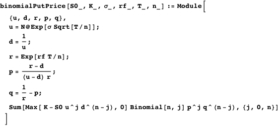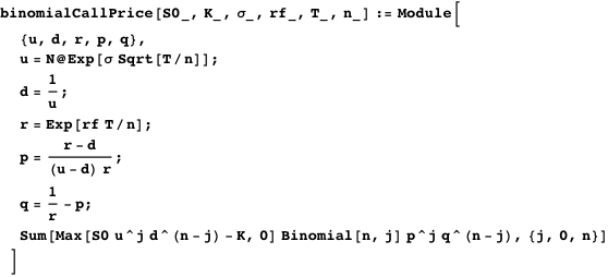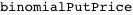 We use these functions to find the prices of call and put options when the current stock price is $50, the strike price is $45, the annual volatility is 40%, the risk-free rate is 10%, the time to maturity is half a year and the total number of up and down moves is 500.