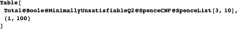 The table below summarizes some larger computer experiments we have conducted to test our conjecture that most of the formulas constructed by the above methods are minimally unsatisfiable. The third column, “