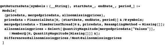 As financial data becomes increasingly available, serious data analysis requires knowing software to manipulate large datasets. Aside from demonstrating many built-in functions, we introduced many custom functions especially designed for technical computation of financial data. Mathematica can do much more than what we have shown in this article. The Wolfram Language in general and Mathematica in particular are well-suited to implement sophisticated financial models, including pricing securities, trading strategies, simulation, optimization, risk management and time-series analysis [7, 8]. Mathematica’s built-in knowledge is also very useful for asset pricing models based on estimating the stochastic discount factor using the generalized method of moments.