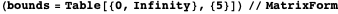 is a two-column matrix of lower and upper bounds for the decision variables.