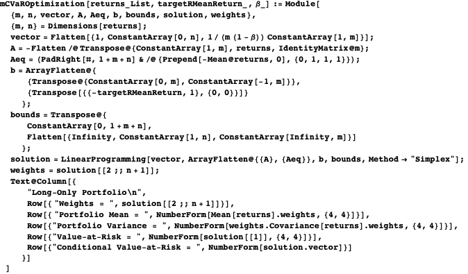 to estimate the optimal weights that minimize CVaR. It takes three arguments: