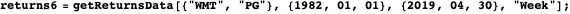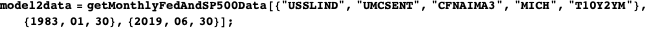 Using this function, we download five macro variables as well as the S&P 500 index returns over the period January 30, 1983, to May 30, 2019.