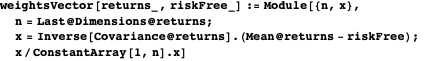 The function computes optimal weights for a long-only portfolio. It can easily be modified to account for short-selling.
