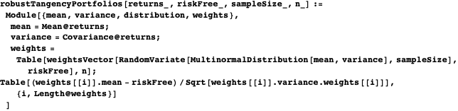to compute tangency portfolios with simulated data. The function takes four arguments:
