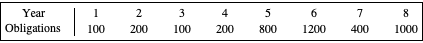 We consider an example very similar to the one presented in [2]. Assume that we have obligations to pay cash flows in the next eight years as shown in the following table. The first row shows years and the second row shows the amount of cash to be paid each year.