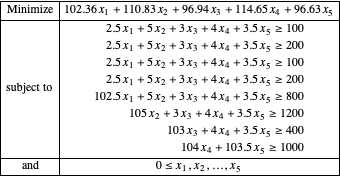 In this section, we illustrate a few applications of linear programming to financial problems similar to those in Cornuéjols, Peña and Tütüncü [2]. A linear program is an optimization problem whose purpose is to minimize or maximize a linear objective function subject to linear constraints. We first decide the decision variables, objective function and constraints. Then we find the values of the decision variables to optimize the objective function.